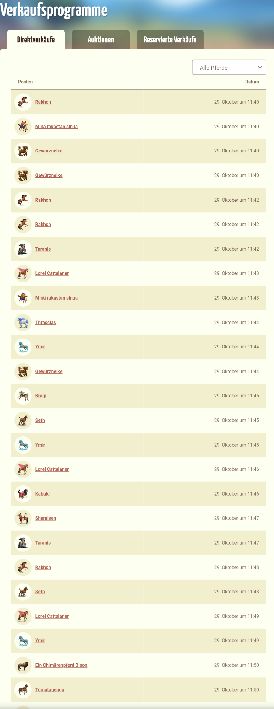 Reitpferd Haflinger Fuchs mit heller MähneReitpferd Hannoveraner RotbraunerReitpferd Oldenburger DunkelbraunerReitpferd Andalusier DunkelbraunerReitpferd Holsteiner DunkelfuchsReitpferd Deutsches Reitpony DunkelfuchsReitpferd Paint Horse Overo-FuchsscheckeReitpferd Shetlandpony DunkelbraunerReitpferd Achal-Tekkiner BraunerReitpferd Französischer Traber Brauner
